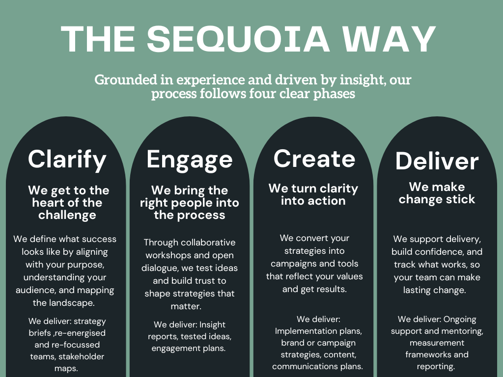 Sequoia works with organisations to build the understanding, trust and support needed to carry important work forward.